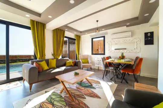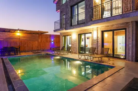 Villa Legendary 2, Seydikemer Kumluova mevkiinde, doğa ile iç içe, yeşilin her tonunun hakim olduğu huzurlu bir konumda yer almakta olup, 8 kişilik konaklama kapasitesine sahip dört yatak odasıyla misafirlerine harika bir tatil deneyimi sunuyor. Şehir gürültüsünden ve hava kirliliğinden uzak, sakin bir tatil arayanlar için mükemmel bir seçenek olan bu villa, korunaklı havuz terasıyla muhafazakar aileler için de oldukça uygun. İzole ve temassız bir tatil geçirmek isteyen misafirler için özenle dizayn edilen Villa Legendary 1, her detay düşünülerek hazırlanmış, konfor ve huzur dolu bir tatil vaat ediyor.