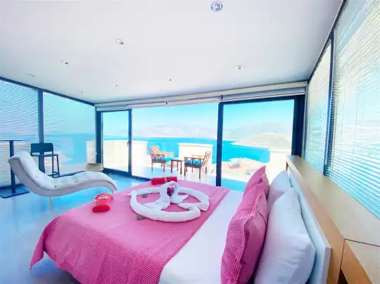 Tüm odalarından Kalkan’ın eşsiz deniz manzarasını izleyebileceğiniz bu özel villada, konforlu ve keyif dolu bir tatil sizleri bekliyor. Şehrin kalabalığından uzak, doğayla iç içe bir tatil deneyimi için Villa Leo sizi bekliyor!