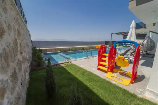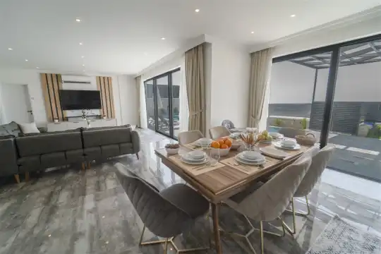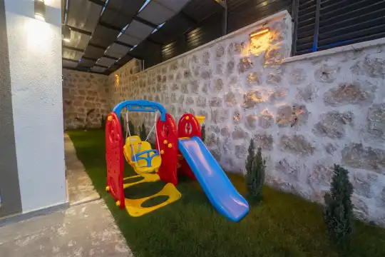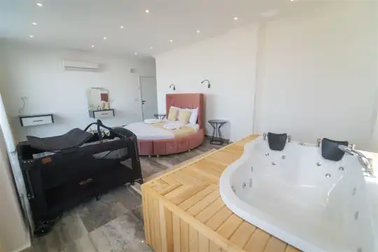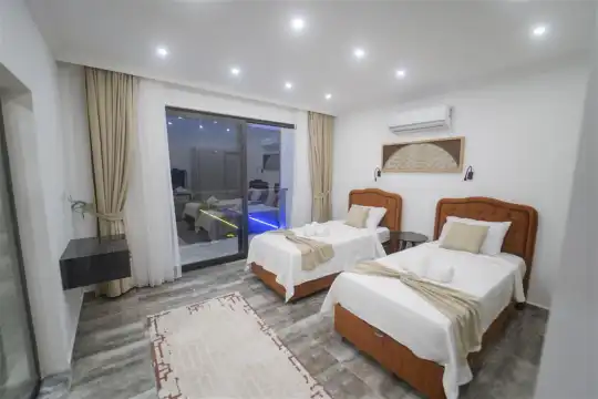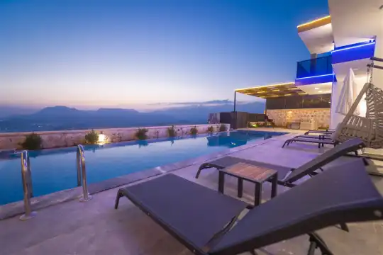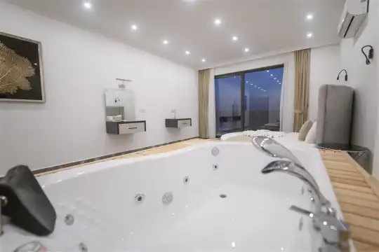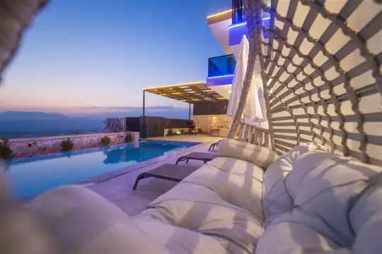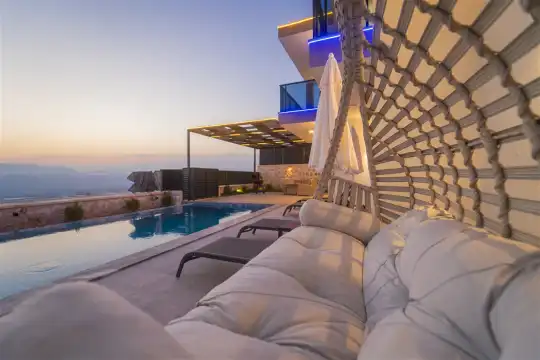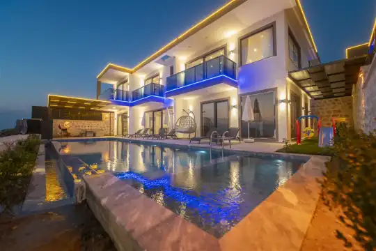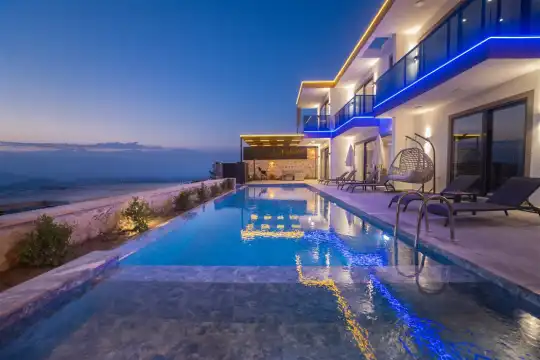 Lüks kiralık villa Lokum, Kalkan Çavdır mevkiinde, doğa ile iç içe bir konumda yer almaktadır. Villamız 3 yatak odasına sahiptir ve 6 kişilik konaklama kapasitesine sahiptir. Ayrıca, 2 odasında jakuzi bulunmaktadır. Rahatlık önceliği olan villamız, özellikle geniş aileler ve muhafazakar aileler için ideal bir tercih sunmaktadır. Kapılarını, dış dünyadan uzakta, sessiz ve sakin bir tatil geçirmek isteyen misafirlerimize açmaktadır.Çocuklarınız için her şey düşünülmüş olan villamızda çocuk oyun alanı ve çocuk havuzu bulunmaktadır.