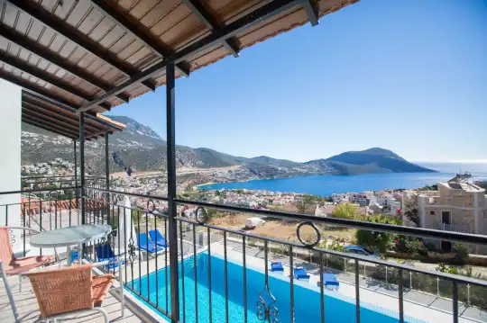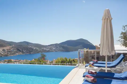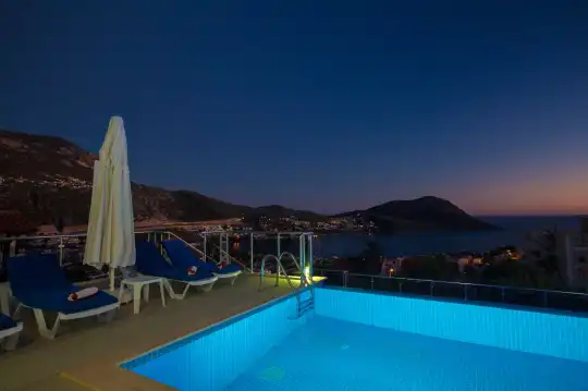 Kalkan merkezindeki deniz manzaralı kiralık Villa Mehtap, sunduğu konumuyla dikkat çeker. Denize, marketlere ve restoranlara yakın olması, misafirlerine kolaylık sağlar. Villa Mehtap, konforlu bir villa tatili için özenle tasarlanmış olup, 6 yatak odasıyla 11 kişilik konaklama kapasitesine sahiptir. Geniş aileler veya arkadaş grupları için ideal bir seçenektir.