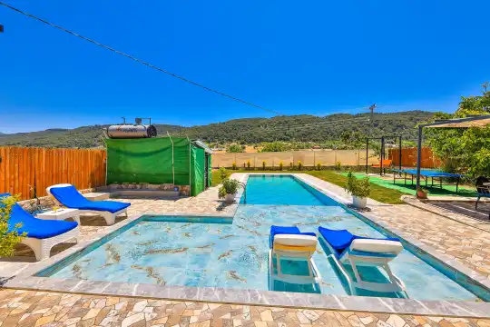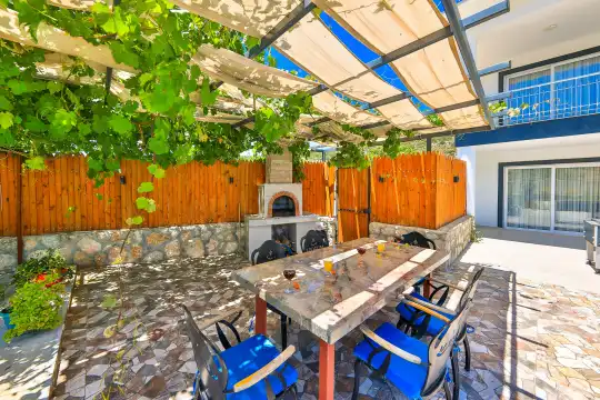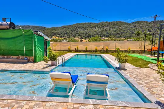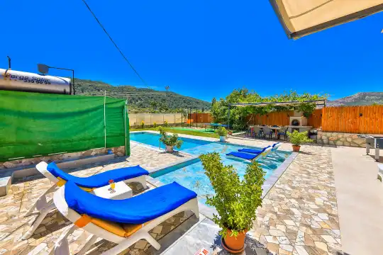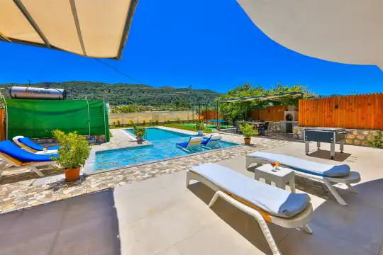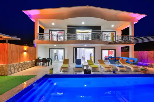 Kalkan'ın Sarıbelen bölgesinde bulunan Villa Miranda, 6 kişilik kapasitesiyle kalabalık aileler ve arkadaş grupları tarafından tercih edilen bir villadır. Şehrin gürültüsünden uzakta, doğa manzarasıyla çevrili bu villada, muhteşem güzellikteki gün batımını izleyerek huzur bulabilirsiniz. Geniş havuz ve havuz terasıyla donatılmış olan villamızda, salıncak, şezlong, oturma grubu, şemsiye, masa tenisi ve langırt gibi olanaklar bulunmaktadır. Özellikle muhafazakar ailelerin tercih ettiği Villa Miranda'nın havuzu ve terası korunaklı bir şekilde tasarlanmıştır. Sevdiklerinizle birlikte keyifli bir tatil geçirmek için Villa Miranda siz değerli misafirlerimizi bekliyor.