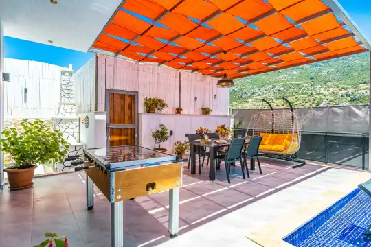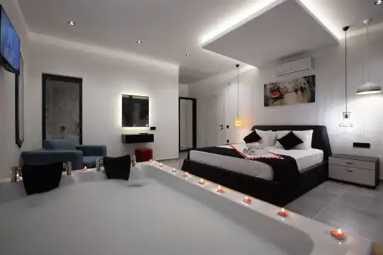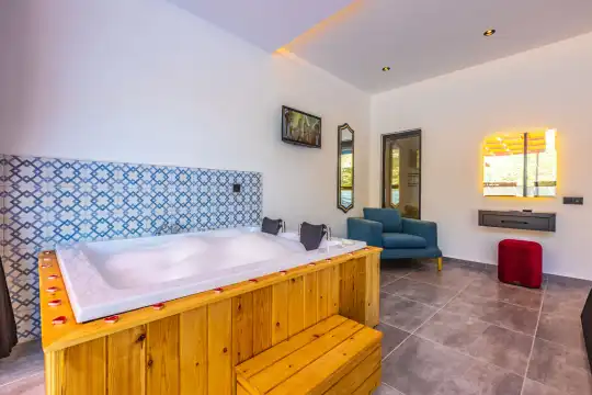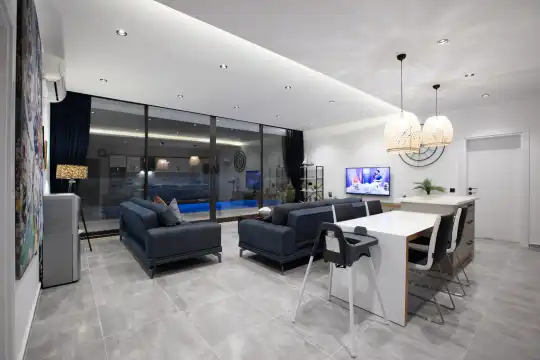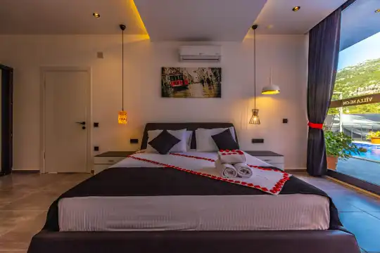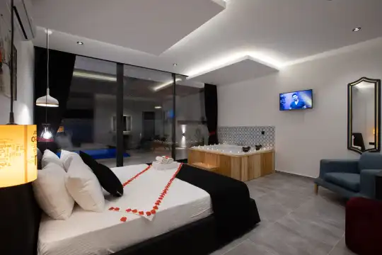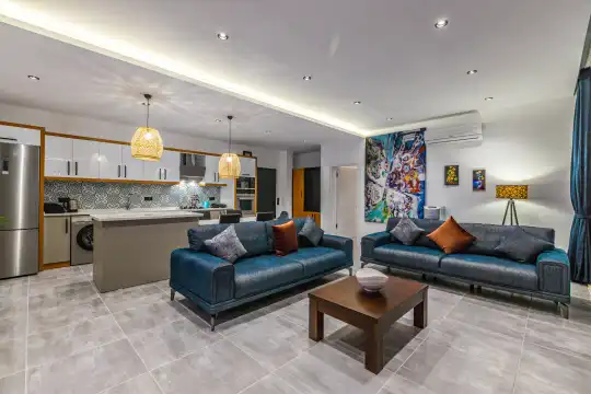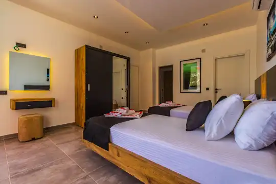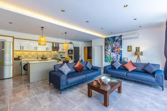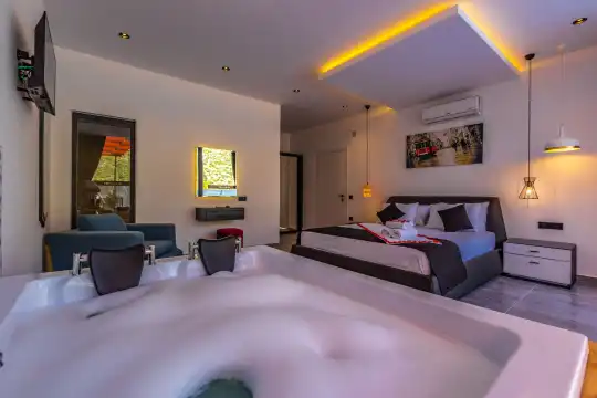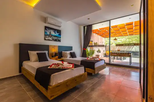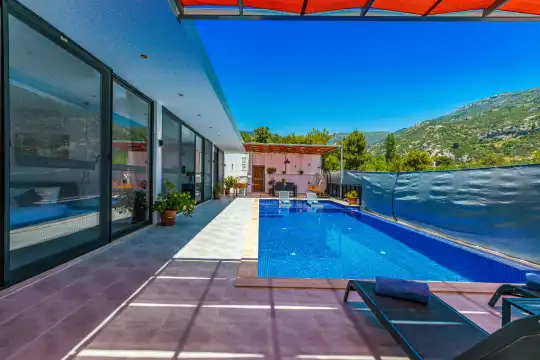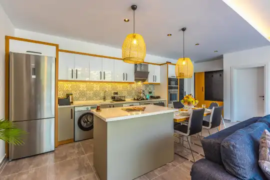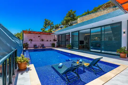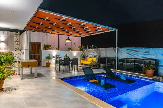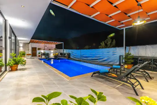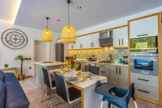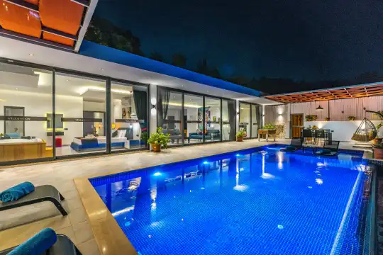 Modern ve şık dekorasyona sahip iç mekanı, ferah yaşam alanlarıyla konforu ön planda tutarken, geniş terası ve doğayla bütünleşen atmosferi sayesinde dinlendirici bir tatil sunuyor. Kendinizi evinizde hissedeceğiniz bu özel villada, sevdiklerinizle birlikte unutulmaz anlar yaşayabilirsiniz.
