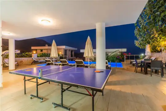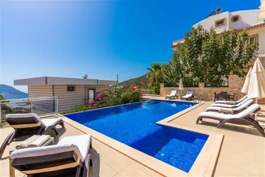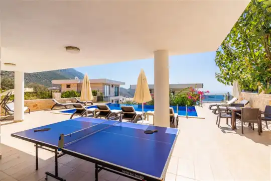 Doğa ve deniz manzarasının bir arada sunulduğu villada, 10 kişiye yeterli sayıda mutfak araç-gereçleri mevcuttur. Ayrıca, havuz terasında 8 adet şezlong bulunmaktadır, böylece güneşin ve manzaranın tadını çıkarabilirsiniz. Eğlence için masa tenisi de sağlanmaktadır.