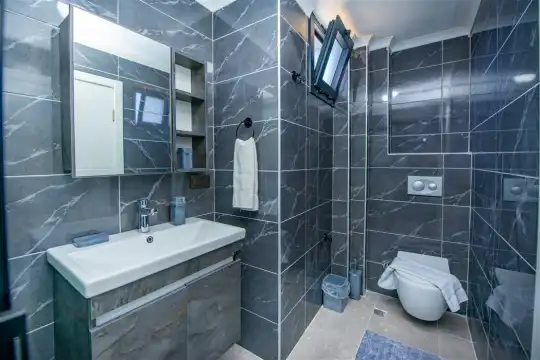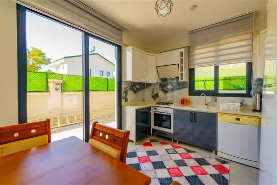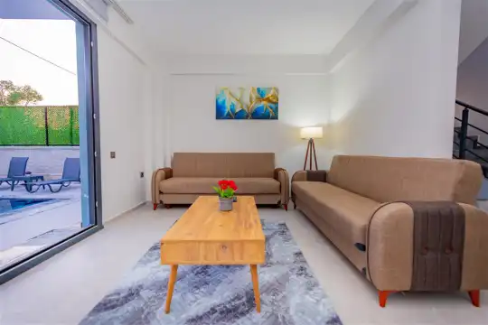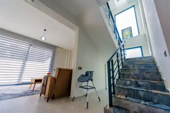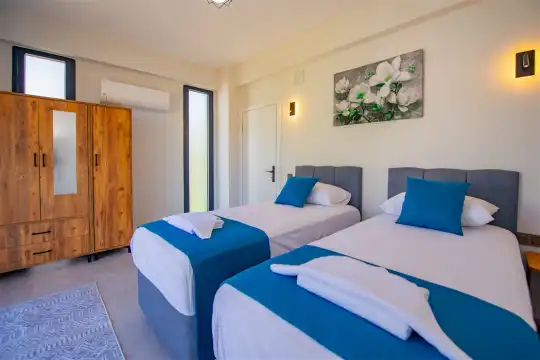 Geniş yüzme havuzu, rahat oturma grubu ve özel barbekü alanı ile donatılmış bahçesi; doğayla iç içe, keyifli anlar için tasarlanmıştır. İç mekanda ferah bir oturma odası, tam donanımlı bir mutfak ve konforlu detaylara sahip 2 yatak odası bulunmaktadır. Üst katta yer alan ebeveyn banyolu bir çift kişilik yatak odası, alt katta ise iki adet tek kişilik yatak bulunan ikinci bir ebeveyn banyolu oda mevcuttur.