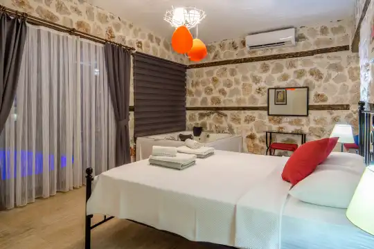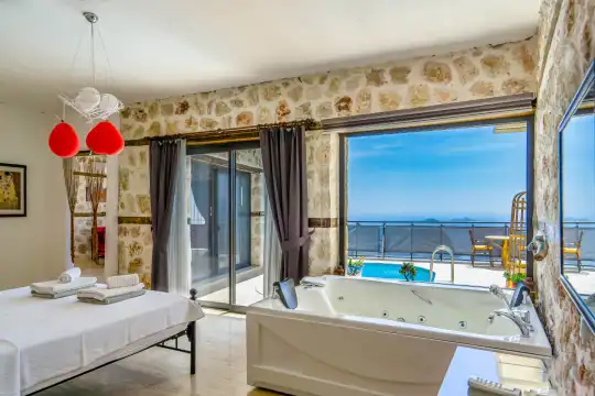 Antalya’nın Kaş ilçesine bağlı Kalkan, Kördere mevkiinde yer alan bu özel villa, balayı çiftleri ve romantik bir tatil arayan misafirler için ideal bir konaklama sunmaktadır. Tek yatak odasına sahip olan villamız, 2 kişilik konaklama kapasitesi ile huzurlu ve konforlu bir tatil deneyimi yaşamanıza olanak tanır. Muhteşem deniz ve doğa manzarasına sahip olan villamız, size eşsiz bir atmosfer sunarken, jakuzisi sayesinde tatilinizi daha keyifli ve rahatlatıcı hale getirir. Ayrıca, havuz terasının korunaklı olması sayesinde gözlerden uzak, özgürce vakit geçirebilirsiniz. Doğayla iç içe, sakin ve romantik bir tatil için sizleri bekliyoruz.