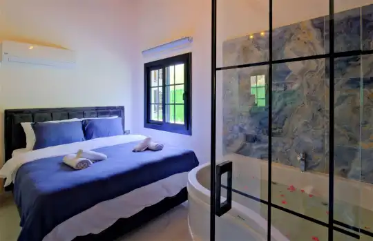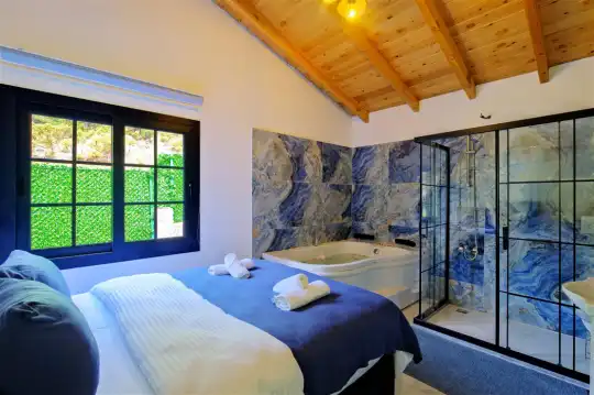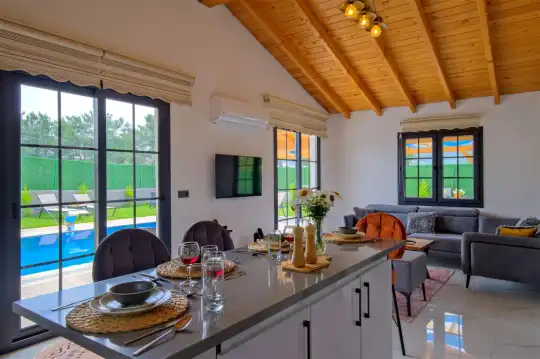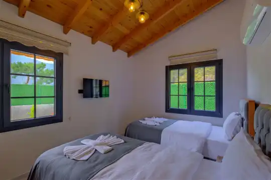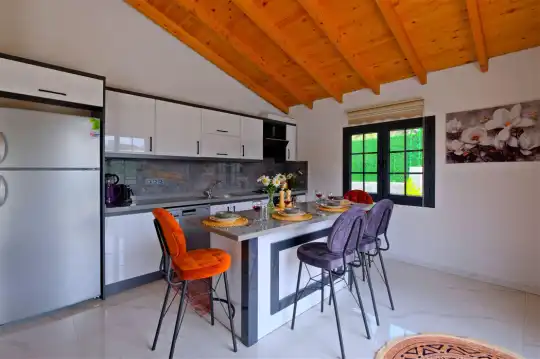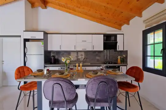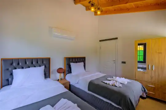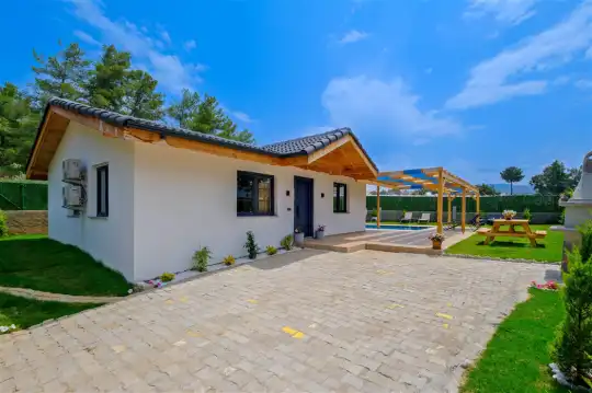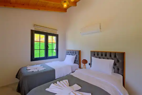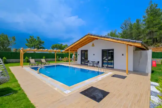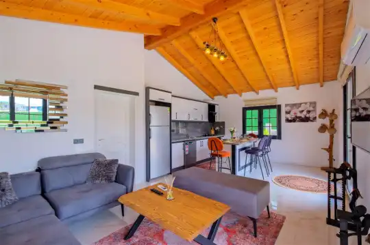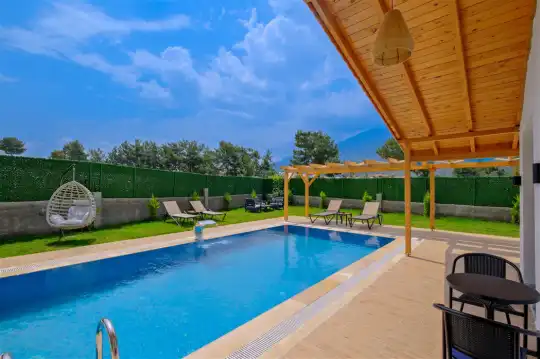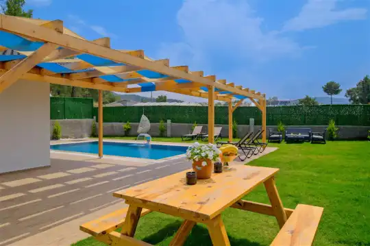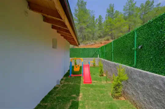 Fethiye'nin huzurlu Esenköy beldesinde konumlanan bu özel tatil villası, kalabalıktan uzak, sakin bir konaklama deneyimi sunmaktadır. Korunaklı bahçesi ve çim alanıyla çevrili, çocuk oyun alanıyla donatılmış olan bu 2 yatak odalı tatil villası, aileler ve arkadaş grupları için ideal bir tercihtir. Villa, doğanın içinde kendine özel bir dünya sunarken, bahçesinde keyifli vakit geçirebileceğiniz bir çim alan ve çocuklarınızın güvenle oynayabileceği bir oyun alanı sunmaktadır.