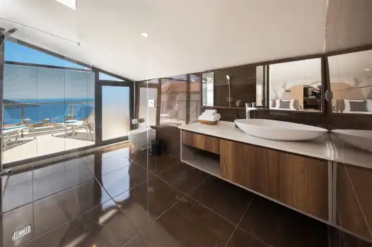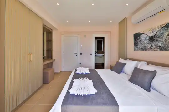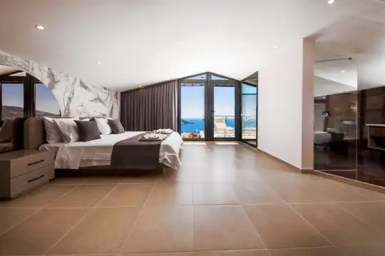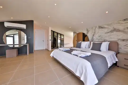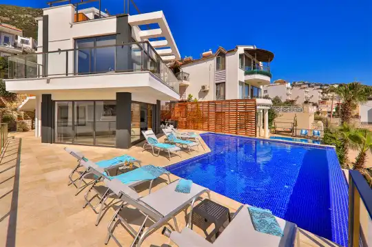 Kalkan'ın etkileyici manzarasına sahip Kızıltaş mevkiinde bulunan Villa Royal Merchant, şehir merkezine yakın bir konumda, mayıs 2021'de tamamlanan lüks ve modern bir tasarıma sahip bir tatil villasıdır. Misafirlerinin konforunu göz önünde bulundurarak tasarlanmış olan villa, sonsuzluk havuzu ve eşsiz Kalkan manzarası ile konuklarını ağırlamaya hazır. Dört katlı bir yapıya sahip olan villa, toplamda 5 yatak odasıyla 10 kişilik konaklama kapasitesine sahiptir. Bodrum katta eğlenceli zamanlar geçirebileceğiniz bir salon ve 2 yatak odası bulunmaktadır. Salon içinde bilardo masası, bar, ufak bir spor köşesi ve oturma grubu yer almaktadır. Zemin katta geniş bir salon ve modern bir Amerikan mutfak, birinci katta ise iki yatak odası bulunmaktadır. Çatı katında ise bir adet yatak odası dizayn edilmiştir. Villa Royal Merchant, konuklarına konforlu ve keyifli bir tatil deneyimi sunmak için özenle tasarlanmıştır.