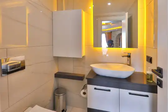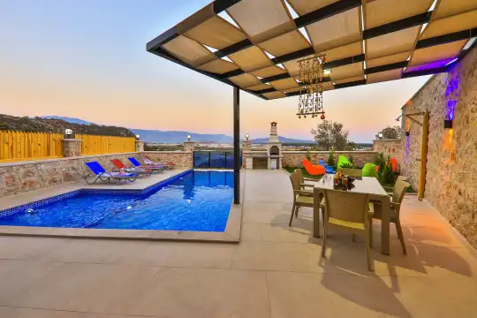 Lüks ve konforun bir araya geldiği villamızda, özel teras alanı ve geniş yaşam alanları bulunmaktadır. Aileler veya balayı çiftleri için mükemmel bir seçenek olan villamız, unutulmaz bir tatil deneyimi sunmaktadır.
