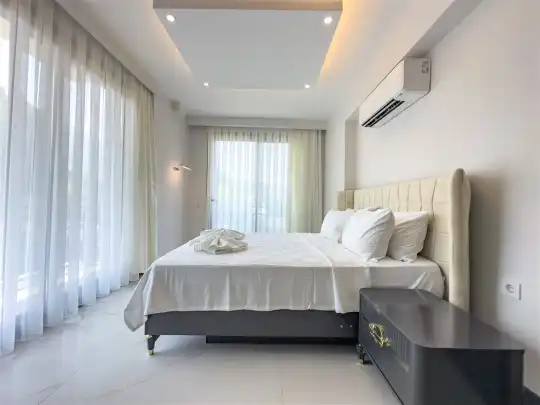 Fethiye'nin popüler tatil bölgelerinden biri olan Ölüdeniz - Hisarönü'nde, merkezi bir konumda ve ünlü Ölüdeniz plajına sadece 2.5 km mesafede bulunan bu etkileyici villamız, 4 suit yatak odası ve 8 kişilik konaklama kapasitesi ile size özel bir tatil sunuyor. Modern mimarisi ve zarif tasarımıyla dikkat çeken villamız, geniş ve konforlu yaşam alanları ile unutulmaz bir tatil deneyimi için sizleri bekliyor. Hem merkezi konumunu hem de sakin atmosferini tercih eden tatilciler, geniş aileler ve arkadaş grupları için mükemmel bir seçim olacaktır. Ayrıca, diğer 3 villamız  ile yan yana konumlanmış olan villamız, geniş aileler ve arkadaş grupları için yan yana villa kiralama seçenekleri sunmaktadır. Müsaitlik durumuna göre bu şık villalar, birlikte tatil yapmak isteyenler için ideal bir tercihtir.