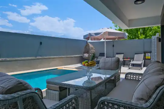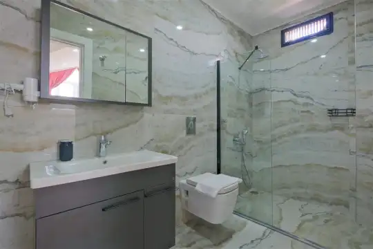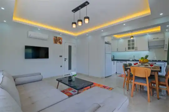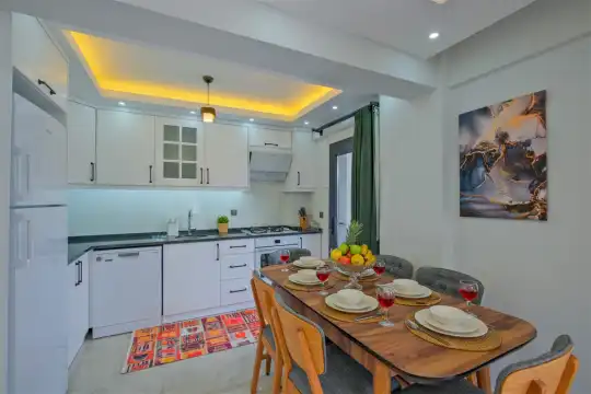 Seydikemer merkeze 350 metre, marketler ve restoranlara ise 100-350 metre mesafede bulunan villamız, huzurlu bir tatil için ihtiyacınız olan her şeyi sunmaktadır. Bahçede şezlonglar, oturma grubu ve salıncak bulunurken, modern Amerikan mutfak, rahat oturma alanı, TV ve klima gibi olanaklarla konforlu bir konaklama sağlar.
