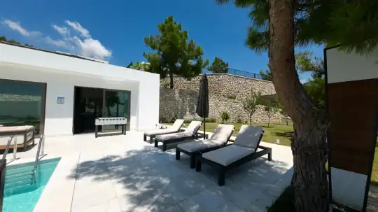 Kalkan İslamlar'da yer alan villamız, doğa ve deniz bağlantısına sahip olup, 4 kişilik konaklama kapasitesiyle hizmet vermektedir. Kapasite dışında misafir kabul edilmemektedir; istisnai durumlar için rezervasyon öncesi satış danışmanlarımızla görüşmeniz rica olunur. Bahçe ve havuzun bir kısmını kısmen korunaklı olan bu villa, muhafazakar çiftler ve odalar için uygun bir seçenek sunuyor. Ancak detaylar için rezervasyon öncesi danışmanlarımızla detaylı görüşmeniz önemlidir.
