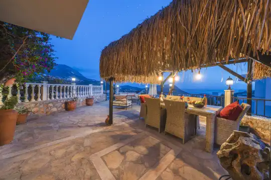 Kalkan merkezde yer alan Villa Tashla, modern tasarımı ve etkileyici manzarasıyla öne çıkan bir tatil evi. Ege'nin incisi Kalkan’ın sakinliğinde konumlanan villa, zarif mimarisiyle dikkat çekiyor. Burası, doğanın yeşil tonlarıyla denizin mavi sularının birleştiği eşsiz bir noktada yer alıyor.