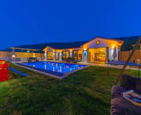 Doğa ile iç içe, muhafazakar yapıya uygun olan bu villa, huzurlu bir tatil imkanı sunuyor. Geniş bahçesi, oyun alanı ve masa tenisi gibi aktivite imkanlarıyla eğlenceli vakitler geçirebilirsiniz. Jakuzili özel alanı ile konforu zirveye taşıyan villa, size ve sevdiklerinize hem mahremiyet hem de rahatlama imkanı sunar.