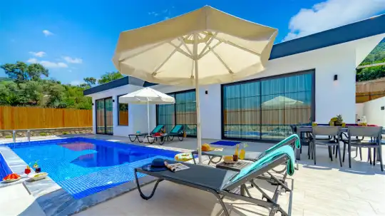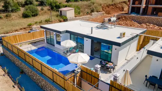 Kalkan'ın Yeşilköy bölgesinde bulunan Kiralık Villa Villammis 2, çekirdek aileler ve balayı çiftleri için ideal bir seçenektir. Balayı, jakuzili, muhafazakar ve doğa içindeki villalar kategorisine giren bu villa, 2 yatak odasıyla 4 kişilik konaklama imkanı sunar. Modern ve etkileyici bir tasarıma sahip olan villa, şehrin gürültüsünden ve stresinden uzakta, muhteşem doğa manzarası eşliğinde lüks ve ayrıcalıklı bir tatil deneyimi sunar. Villamızda 2 yatak odası, salon ve Amerikan mutfak bulunmaktadır. Ana yatak odasında jakuzi de mevcuttur. Özel olarak tasarlanmış bu villa, gözlerden uzak, rahat bir tatil sunmak için özenle düşünülmüş detaylarla doludur. Tatiliniz boyunca konforlu bir konaklama deneyimi yaşamanız için her şey düşünülmüştür.