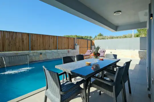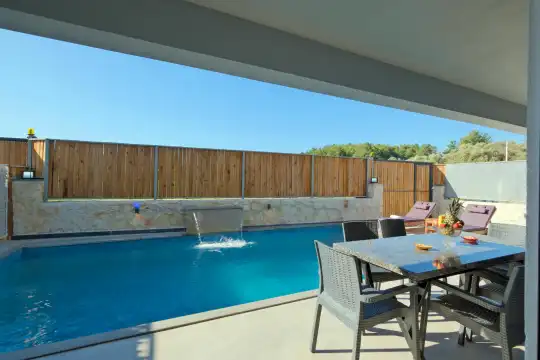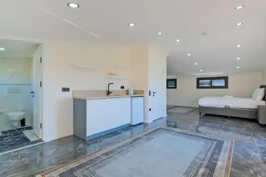 Villanın geniş bahçe ve havuz alanında, misafirlerin konforu düşünülerek şezlong takımı, oturma grubu ve barbekü alanı bulunmaktadır. Havuz terasına açılan ferah oturma odası ve tam donanımlı açık mutfağı, tatiliniz boyunca ihtiyacınız olan her detayı karşılayacak şekilde tasarlanmıştır.