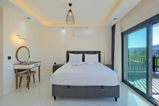 Seydikemer Merkez mevkiinde yer alan bu şık villa, 6 kişilik konaklama kapasitesi ve 3 yatak odasıyla kalabalık aileler veya arkadaş grupları için ideal bir tatil seçeneğidir. Özel havuz alanıyla doğayla iç içe bir konumda bulunan villa, huzurlu ve keyifli bir konaklama sunar.