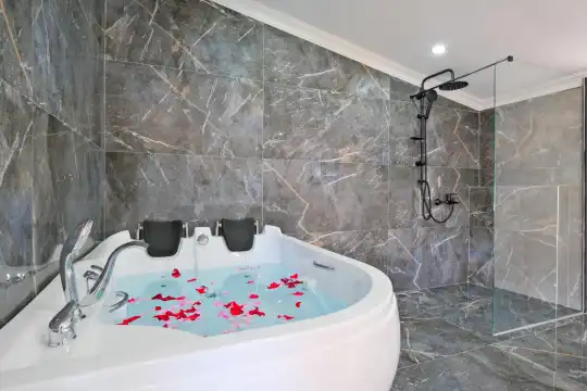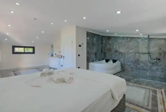 • 1. ve 2. Yatak Odaları: Çift kişilik yatak, ebeveyn banyosu (birinde ayrıca jakuzi).