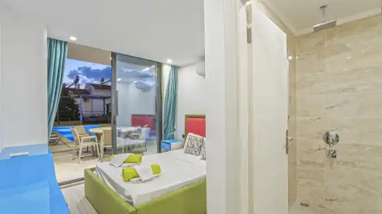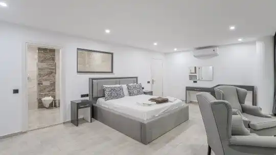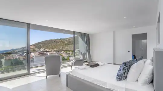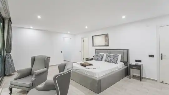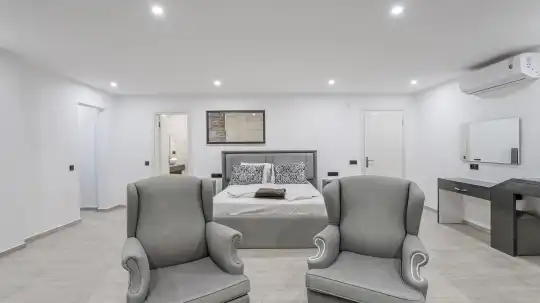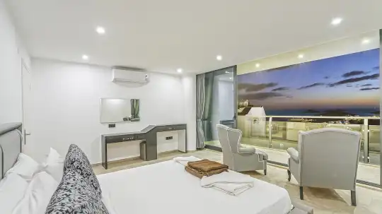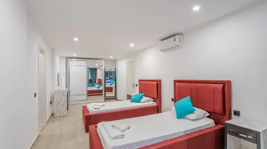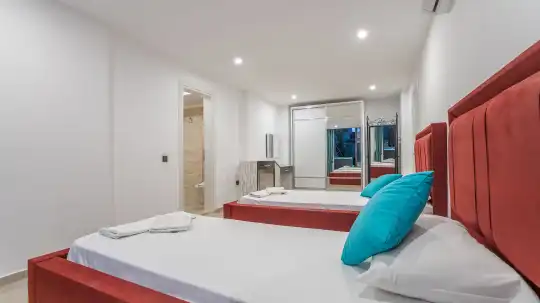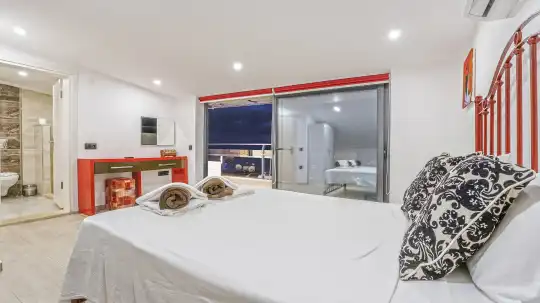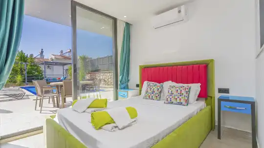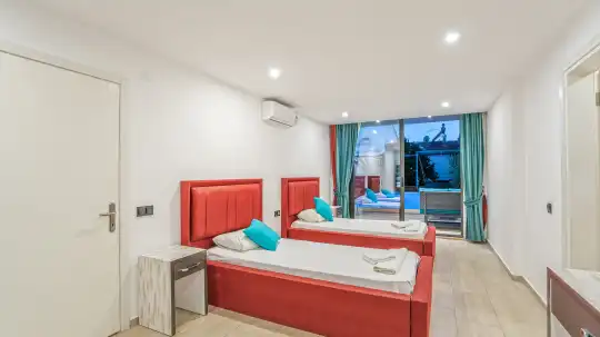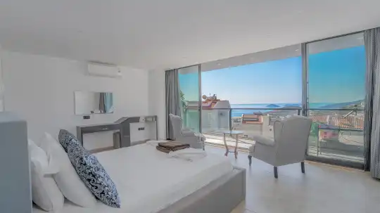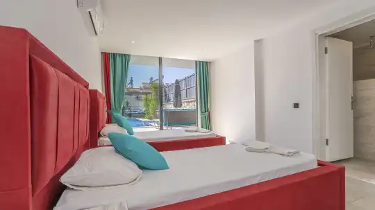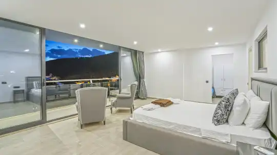Villada 4 geniş yatak odası bulunmakta olup, teras katındaki yatak odasında manzaraya karşı keyif yapabileceğiniz özel bir jakuzi yer alıyor. Gün batımını izlerken eşsiz bir atmosferde rahatlamanın tadını çıkarabilirsiniz.
