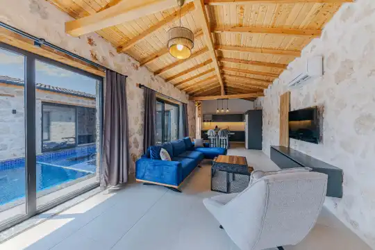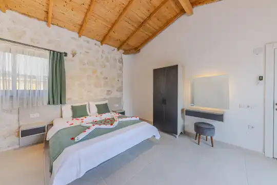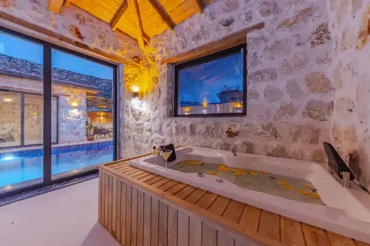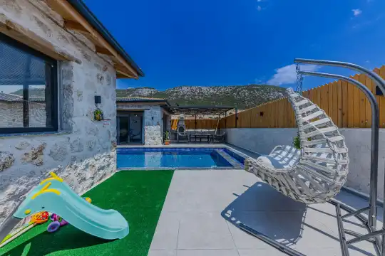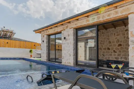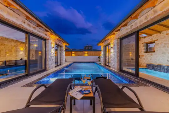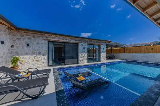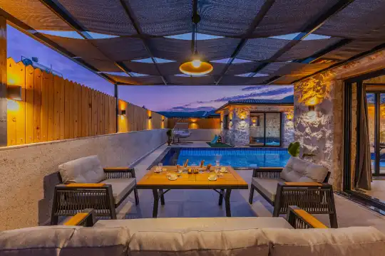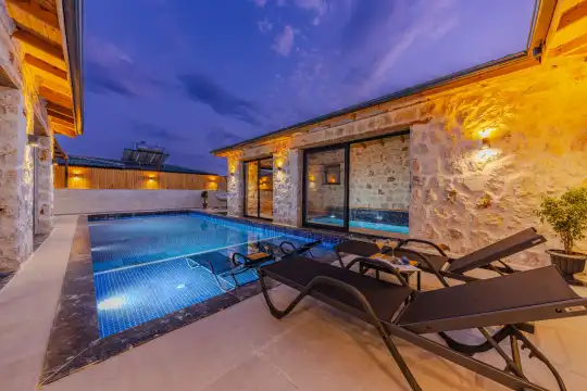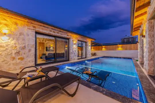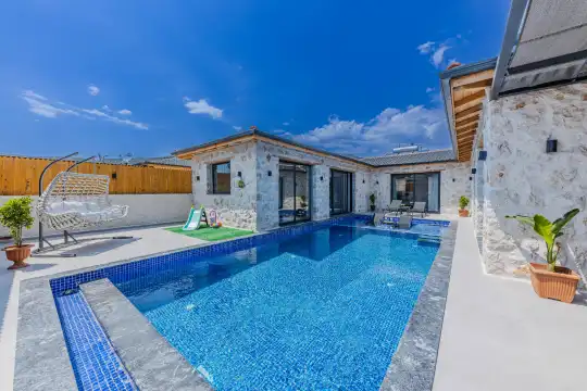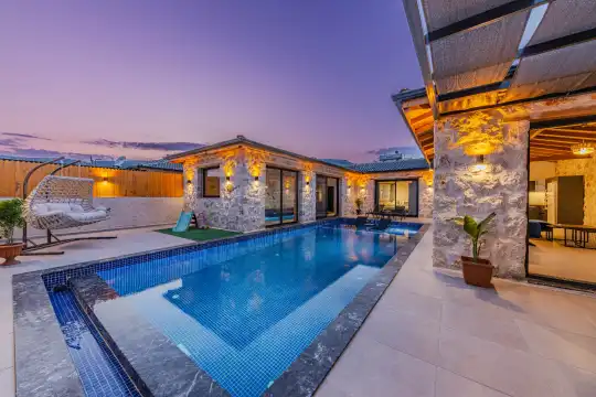 2024 yılında tamamlanan, Kalkan Bezirgan'da bulunan villamız, doğa manzaralı ve Kalkan merkeze araçla 20 dakika uzaklıktadır. 2 yatak odası ve 5 kişilik kapasitesiyle, korunaklı özel havuz, jakuzi, salıncak, çocuk havuzu, sauna ve kapalı havuz gibi imkanlar sunmaktadır.