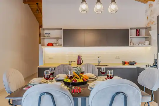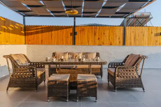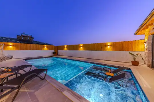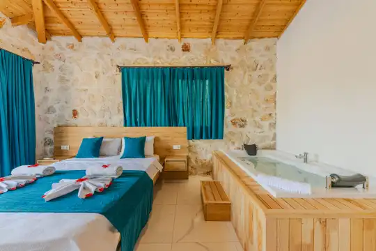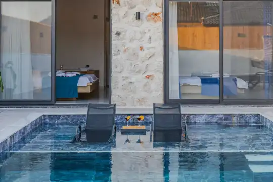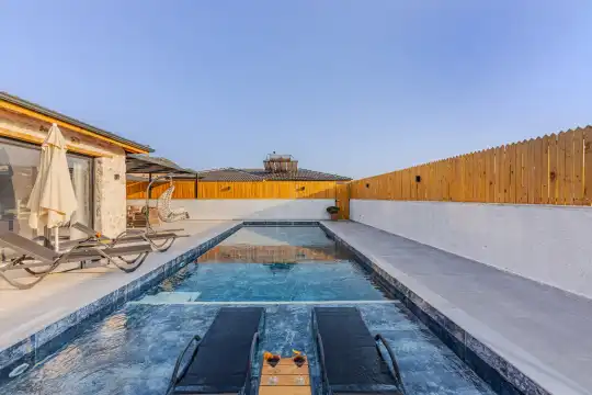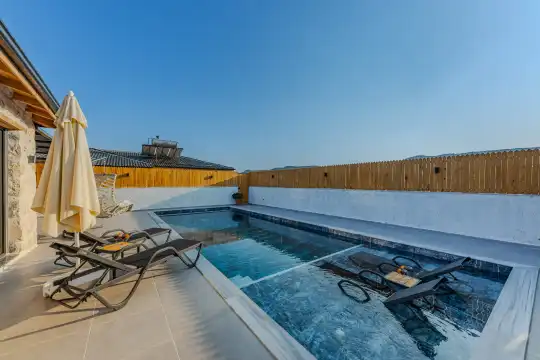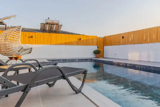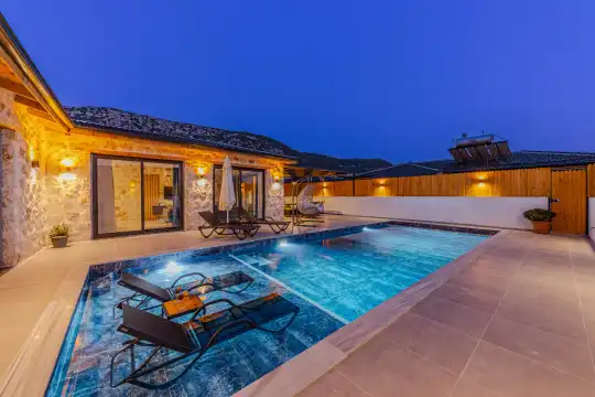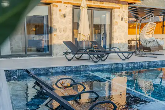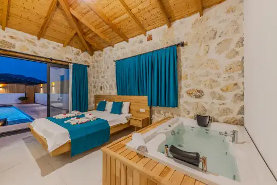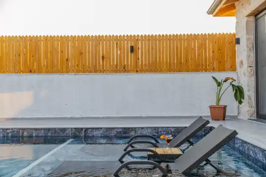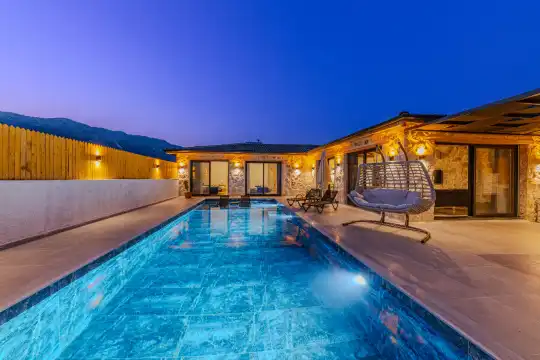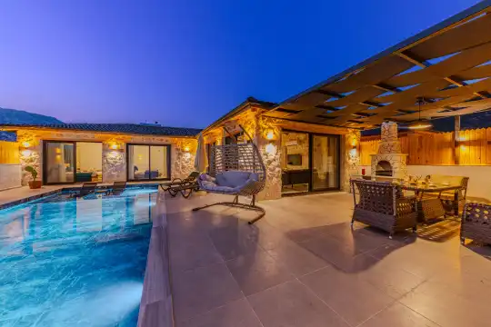 3 yatak odası ve 6 kişilik kapasitesiyle, korunaklı özel havuzuyla muhafazakar aileler için uygun olan villamızda jakuzi, salıncak ve çocuk havuzu da bulunmaktadır. Geniş havuz alanı, çocuklu aileler için avantaj sunarken, balayı çiftleri için de popüler bir seçenek haline gelmiştir.