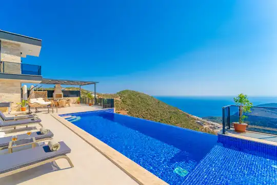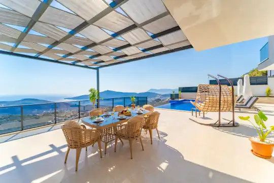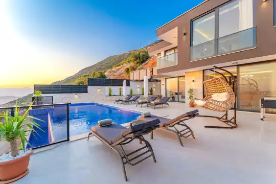 Kalkan Kördere, Ordu bölgesinde yer alan Villa Yeşim, 5 yatak odası ve 10 kişilik konaklama kapasitesiyle muhteşem deniz manzarası eşliğinde unutulmaz bir tatil sunuyor. Geniş bahçesinde sonsuzluk havuzu, salıncak, barbekü ve manzaraya karşı yemek masası ile konforu bir araya getiriyor. Modern ve lüks tasarımıyla öne çıkan villada jakuzi, sauna, Türk hamamı ve bilardo, langırt gibi oyun olanakları bulunan oyun odası bulunmaktadır. Sevdiklerinizle keyifli bir tatil için Villa Yeşim’i tercih edebilirsiniz.