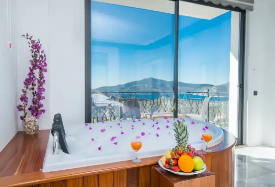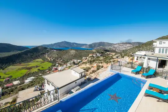 Kalkan'ın gözde beldesi Ulugöl mevkiinde konumlanan Villa Yıldız1, 3 yatak odasıyla geniş aile ve arkadaş grupları için ideal bir konaklama seçeneği sunmaktadır. Ultra lüks detaylarla tasarlanan villa, muhteşem deniz ve doğa manzarasıyla sizlere unutulmaz bir tatil vadediyor. Kalkan şehir merkezi ve Halk Plajı'na yakın bir konumda bulunan villa, hem şehir hayatının hem de sahilin keyfini çıkarma fırsatı sunmaktadır.
