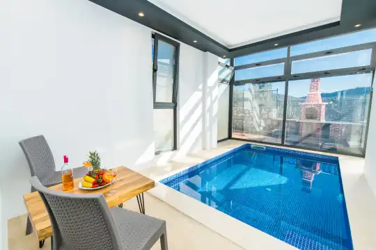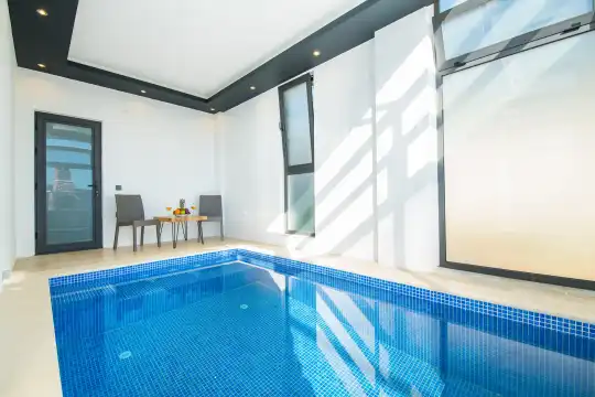 Sade ve şık tasarımıyla dikkat çeken Villa Yıldız1, ihtiyacınız olan tüm ekipmanları içermektedir. Ancak, kapalı havuzda ısıtma sistemi aktif değildir. Ayrıca, villaya giden yolun son 50 metresi dik bir yokuştur, bu bilgiyi göz önünde bulundurarak tatilinizi planlayabilirsiniz. Villa Yıldız1, konforlu ve şık bir tatil deneyimi için sizi bekliyor.