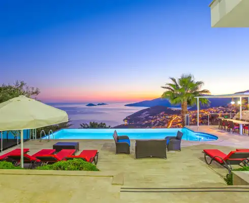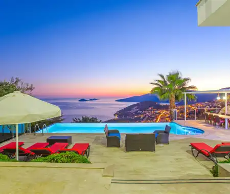 Kalkan’ın Kızıltaş mevkiinde, etkileyici manzarasına hakim kiralık villamız, geniş aileler ve arkadaş grupları için ideal bir konaklama seçeneğidir. Villa Yirmi, 5 yatak odasıyla 10 kişiye kadar konuk ağırlayabilir ve unutulmaz bir tatil deneyimi sunar. Havuz terasından başlayarak tüm katlardan Kalkan’ın eşsiz manzarasının tadını çıkarabilirsiniz. Ayrıca, spor salonu, bilardo masası ve masa tenisi gibi çeşitli eğlence seçenekleriyle tatilinizi hem dinlendirici hem de keyifli hale getirebilirsiniz.