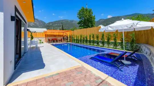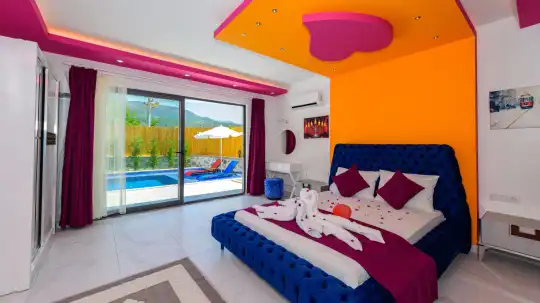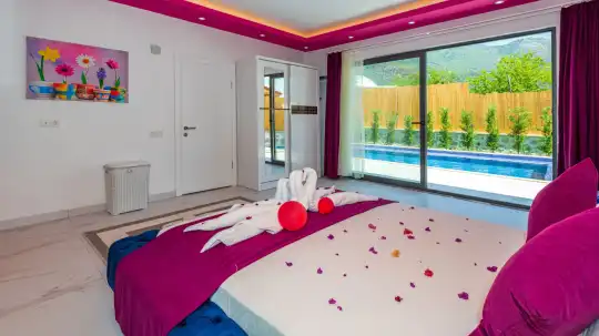 Villa Zeytinçiçeği, Kalkan'ın Çayköy bölgesinde konumlanmış olan villamızdır. Tek yatak odası bulunmaktadır ve bu özellikle balayı çiftleri için oldukça idealdir. Korunaklı yapısıyla muhafazakar ailelerin tercihleri arasında da yer alır. Villamızın yatak odasında bulunan jakuzi, çiftlerimizin yılın bütün yorgunluğunu üzerlerinden atabilecekleri bir olanaktır. Geniş havuz terasında mangal keyfi yapabilir ve kuş cıvıltıları eşliğinde huzur dolu bir tatil geçirebilirsiniz.