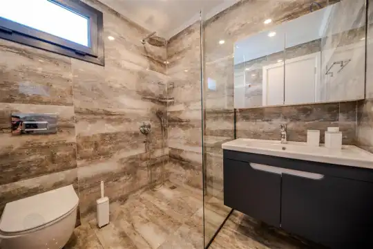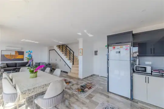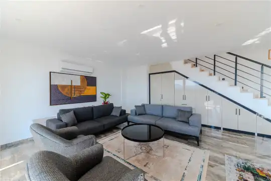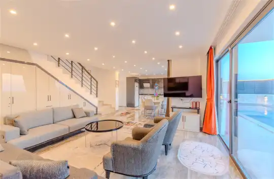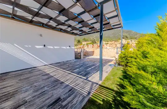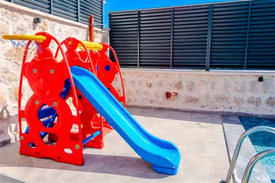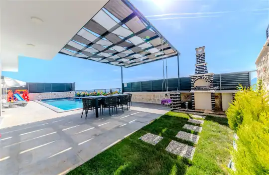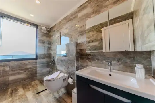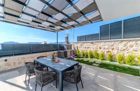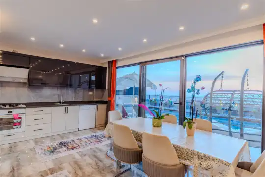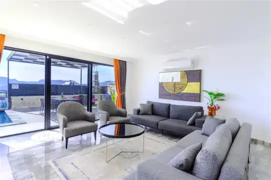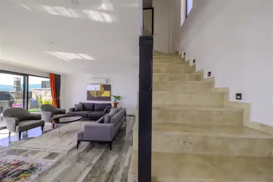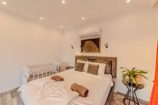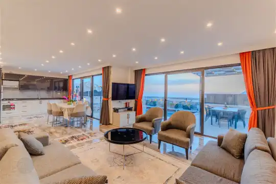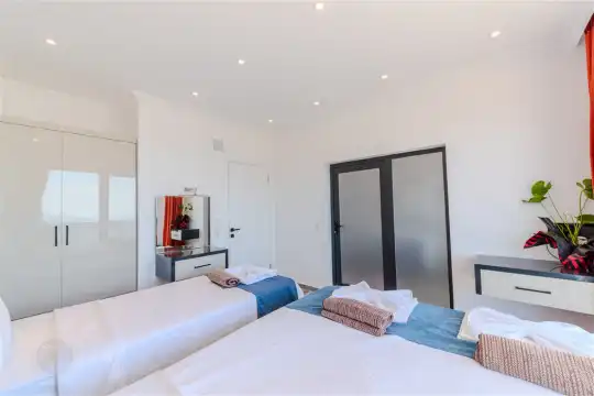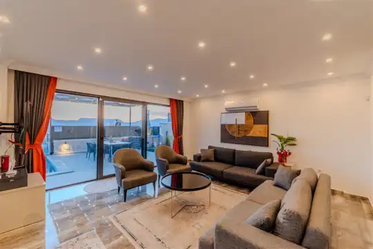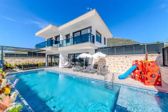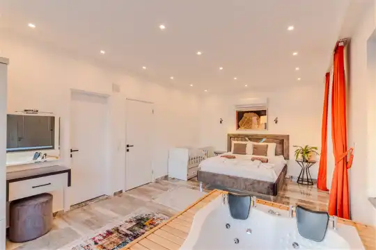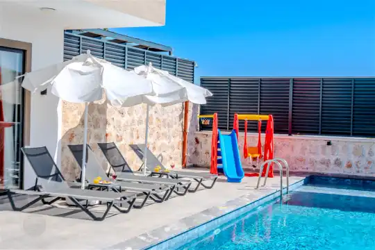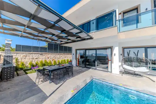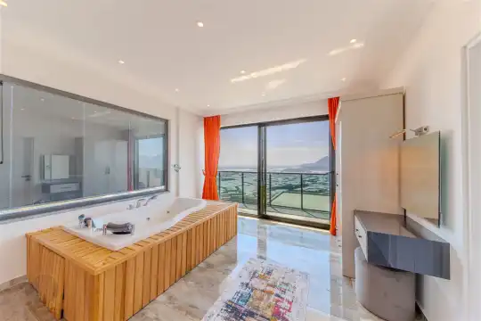 Villamız, muhteşem manzarası ile dikkat çeken lüks bir tatil seçeneğidir. 2 suit yatak odasıyla ve 1 ek yatak ile 5 kişiye kadar konaklama imkanı sunar. Ebeveyn yatak odasında çift kişilik yatak ve jakuzi bulunmaktadır; diğer yatak odasında ise 2 adet tek kişilik yatak mevcuttur. Her iki yatak odasında da özel banyo tuvalet ve klima bulunmaktadır.