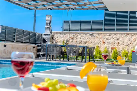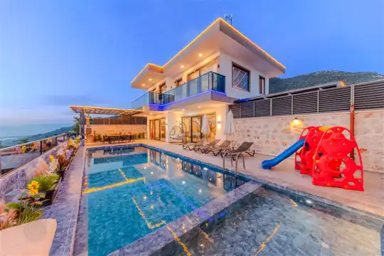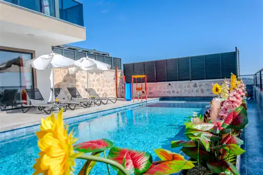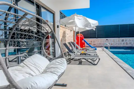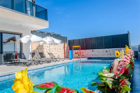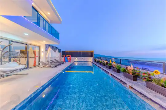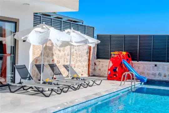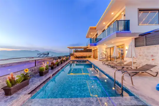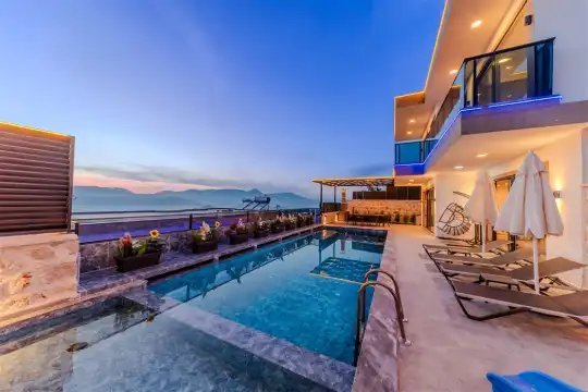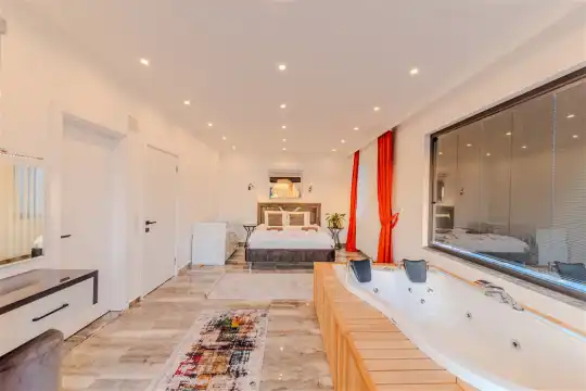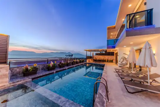 Sonsuzluk havuzunda muhteşem doğa ve gün batımı manzarası eşliğinde keyifli zaman geçirebileceğiniz bu villa; lüks, muhafazakar ve jakuzili villa kategorilerinde yer almaktadır. Balayı çiftleri ve çekirdek aileler için ideal bir tatil seçeneği sunmaktadır.